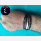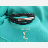 دستبند چرم مردانه چهار لاین دو بافت استیل نقره ای