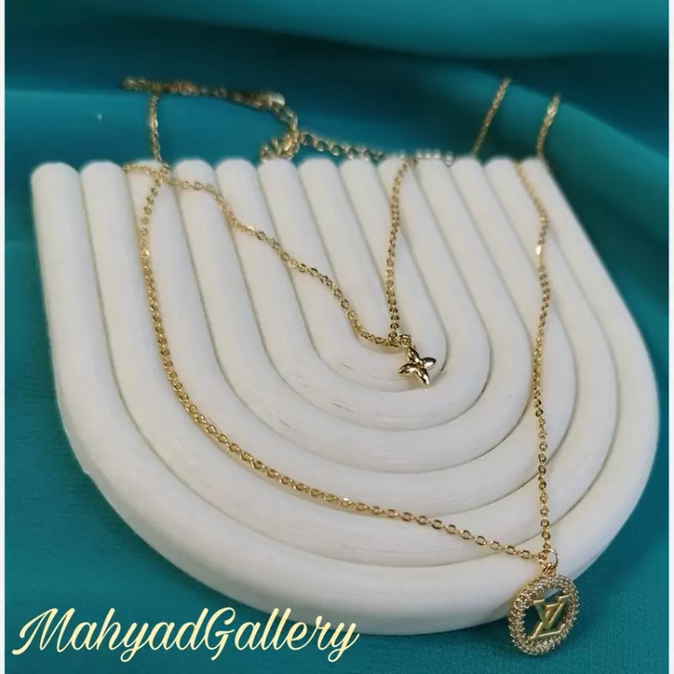 گردنبند دولاین LV و ستاره *طلایی *رنگ ثابت *ضد حساسیت *قابلیت تغییر سایز