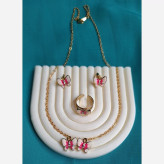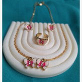 ست دخترانه شامل گردنبند، گوشواره میخی، انگشتر فری سایز رنگ ثابت کیفیت عالی در دو طرح گل و پروانه طرح پروانه در سه رنگ صورتی، قرمز و یاسی و طرح گل، سبز ✅️گردنبند طرح گل، قابلیت تغییر سایز دارد.