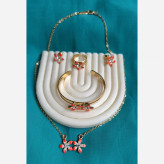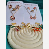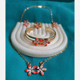 ست شامل گردنبند ،گوشواره میخی ،دستبند و انگشتر فری سایز رنگ ثابت کیفیت عالی در دو طرح: دوگل نارنجی تک گل قرمز ✅️در طرح تک گل، زنجیر گردنبند قابلیت تنظیم ارتفاع دارد.