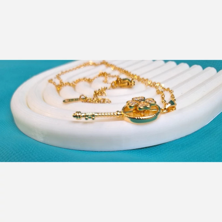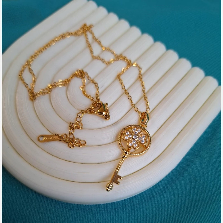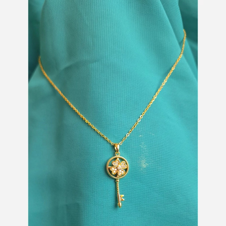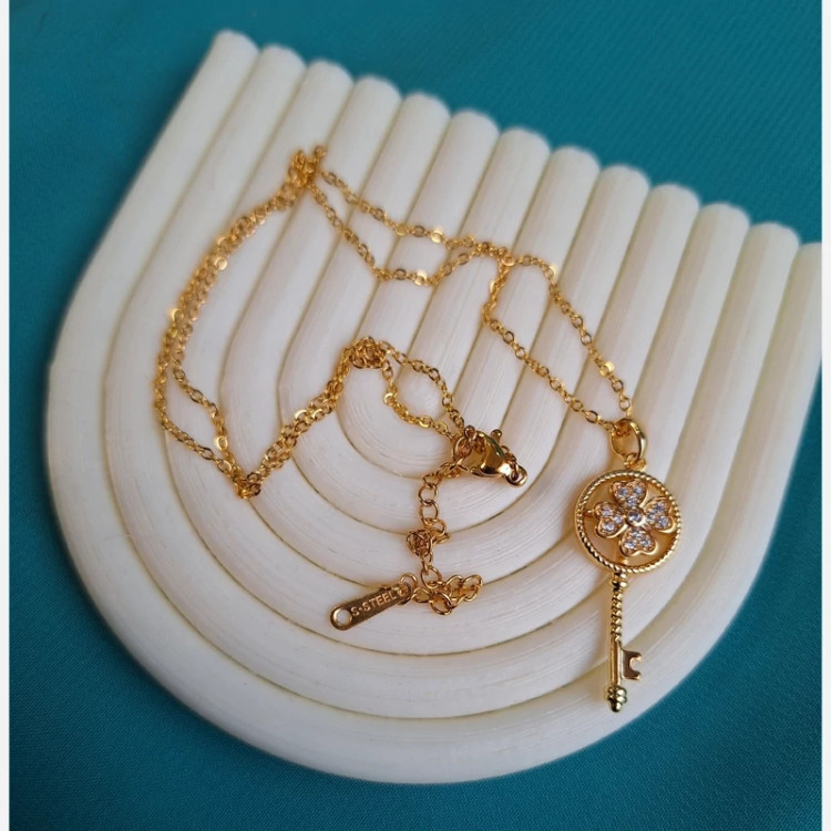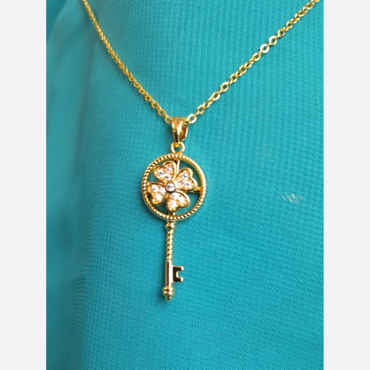گردنبند کلید با گل متحرک رنگ ثابت کیفیت عالی طلایی نگین کاری شده با حک s.steel قابلیت تنظیم سایز قفل طوطی