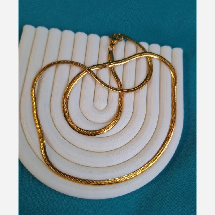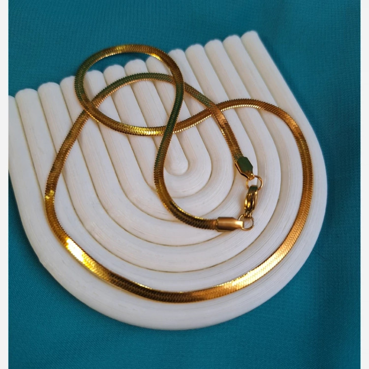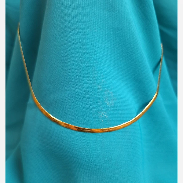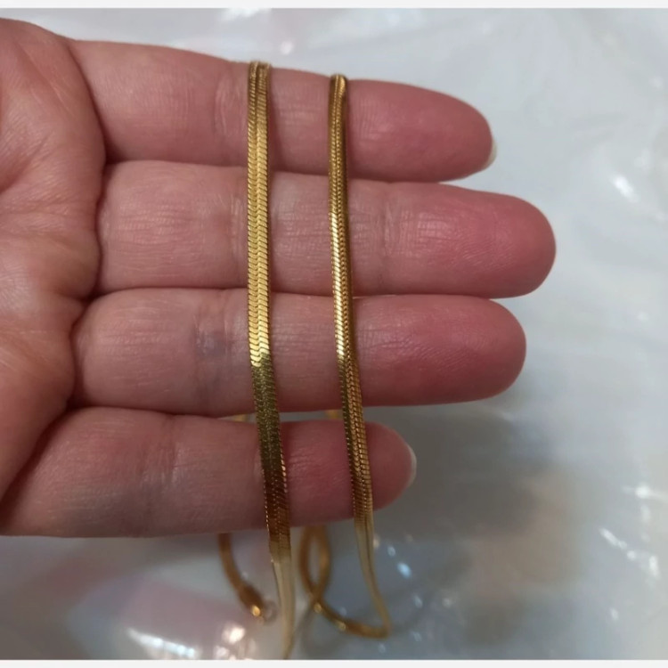 زنجیر هرینگبون طلایی رنگ ثابت کیفیت عالی قفل طوطی 2 میل و 3 میل 45 سانتیمتری مدل 2 میل کمی توپر تر است، در حالی که 3 میل صاف و تخت است.
