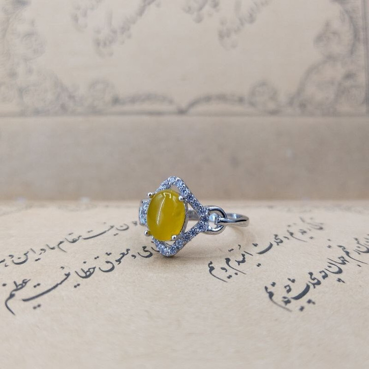 انگشتزنقره با سنگ عقیق زرد(شرف الشمس) روکش طلا سفید پایه ایتالیا ساخت ایران، بسیار زیبا و ظریف