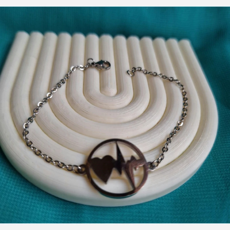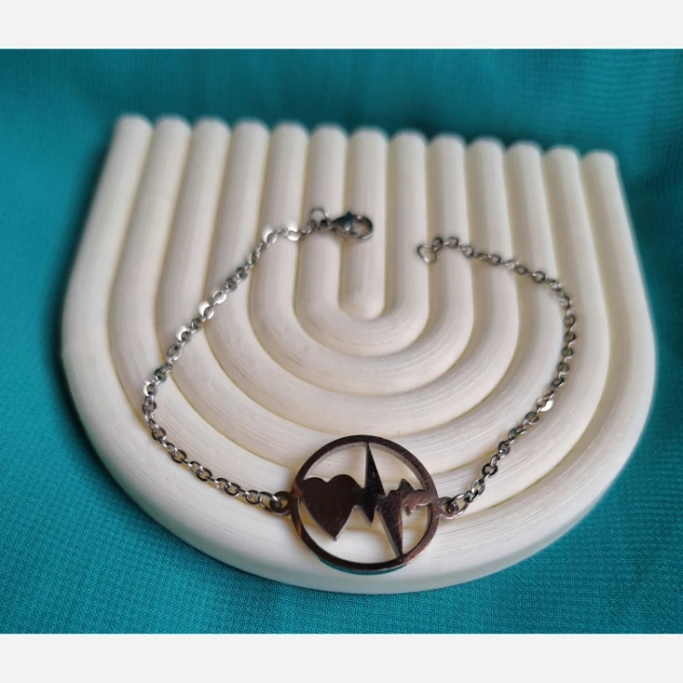 دستبند استیل طرح ضربان قلب رنگ ثابت با کیفیت قفل طوطی 18سانتیمتر