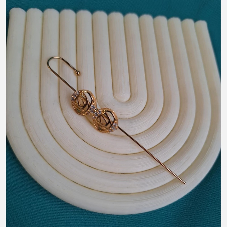 مثل عکس سوم، قسمت منحنی بالای گوش قرار میگیره و قسمت تیز داخل سوراخ گوش.