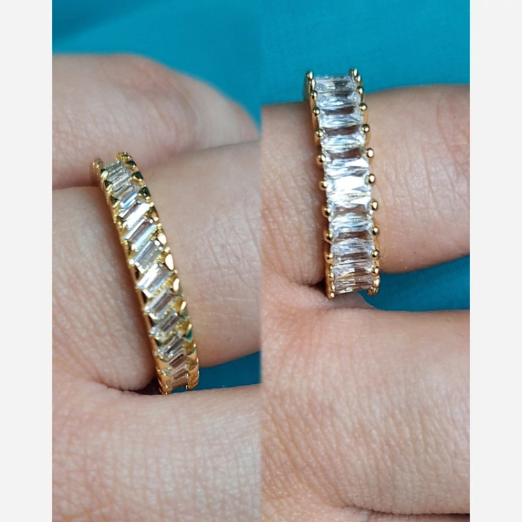 دو مدل حلقه فول نگین رنگ ثابت با کیفیت مدل اول : طلایی با نگینهای صاف سایز 7 و 8 مدل دوم: طلایی فری سایز با نگینهای اریب