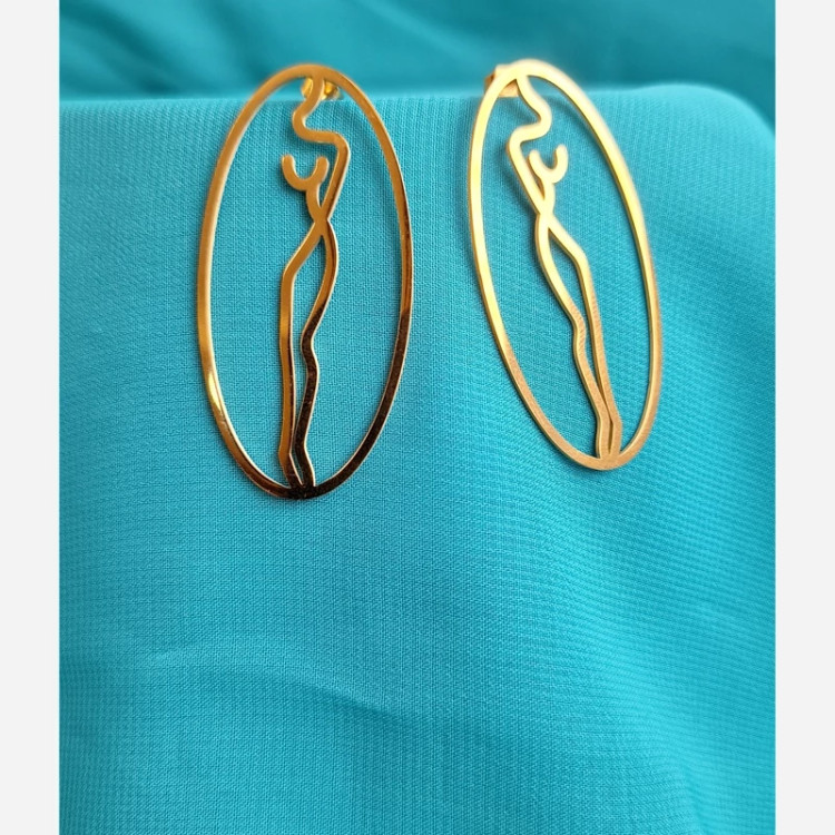 گوشواره میخی طرح بانو طلایی رنگ ثابت کیفیت عالی ظریف و زیبا
