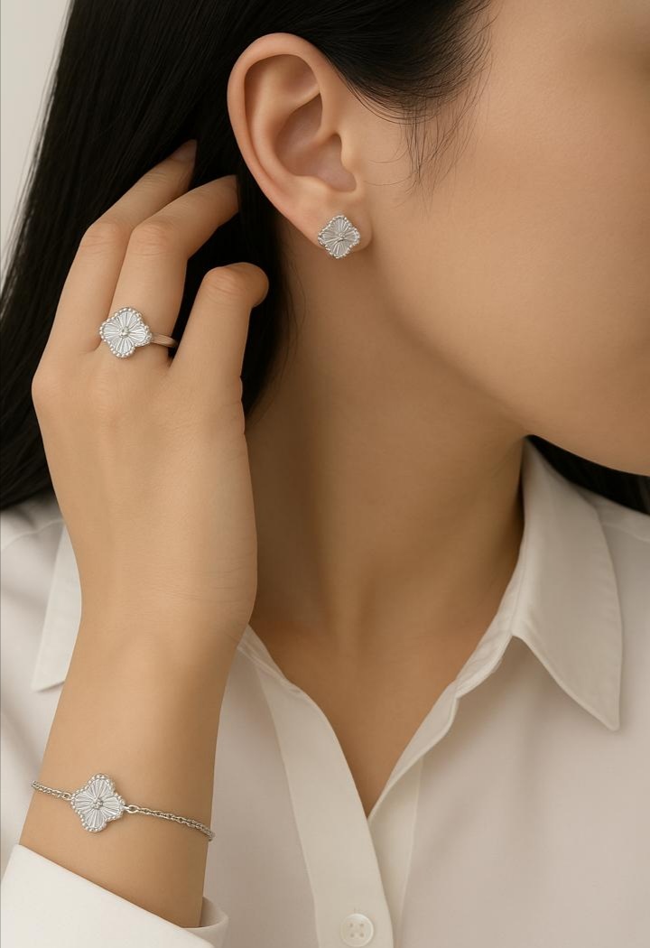 این نیم ست شامل انگشتر سایز 8و یک جفت گوشواره میخی می باشد، کیفیت محصول بسیار بالا و گرید یک هست کار وارداتی و آبکاری رادیوم می باشد، دستبند همین نیم ست هم موجوده
