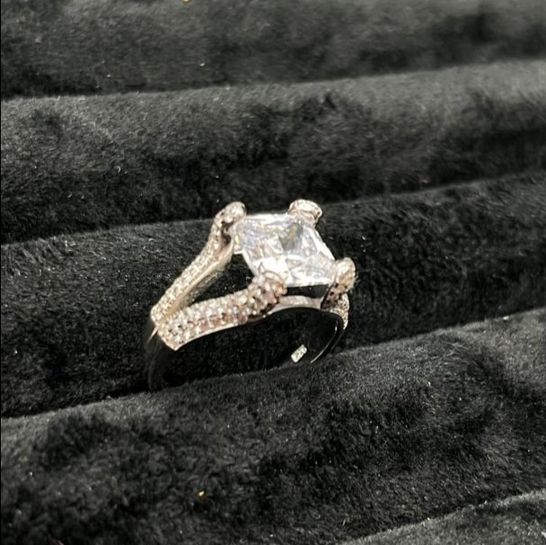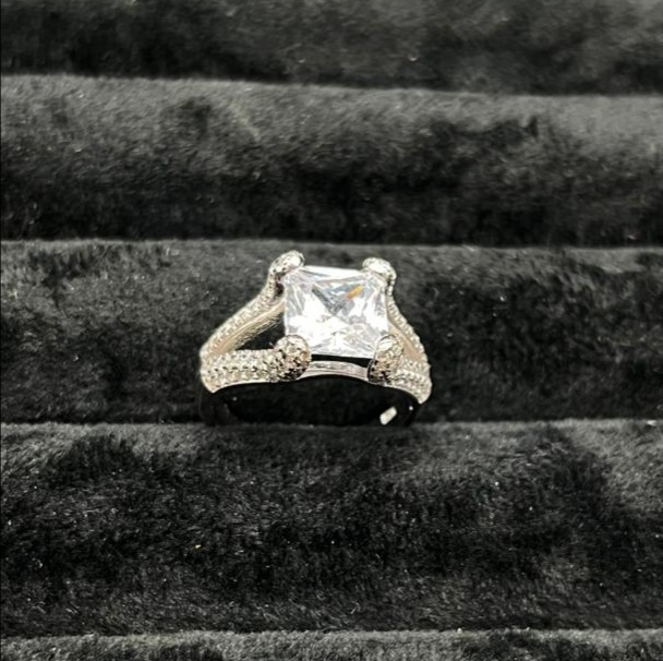 انگشتر بسیار شیک، با کیفیت گرید یک، وارداتی، نقره 925آبکاری رادیوم، نگین اتریشی تراش الماس سایز، 8