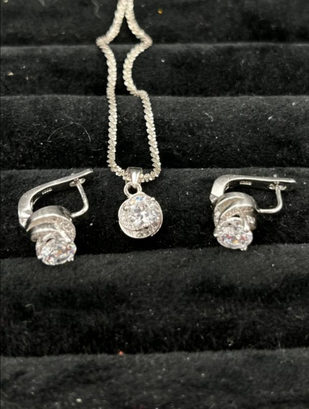 نیم ست جواهری شامل یک جفت گوشواره و یک پلاک بسیار با کیفیت و شیک، جنس نقره 925آبکاری رادیوم، بدون تغییر رنگ بدون ایجاد حساسیت